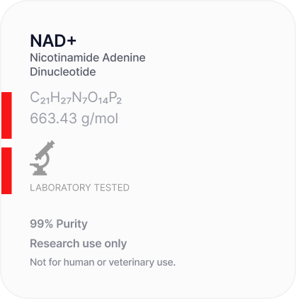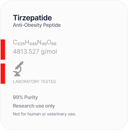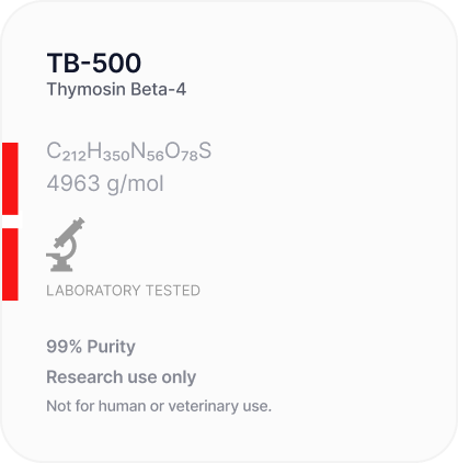 All products listed and sold by Peptides Vela are intended STRICTLY for laboratory research purposes — specifically for in vitro studies. They are NOT INTENDED for human or animal consumption, NOR FOR USE in foods, drugs, cosmetics, medical devices, or diagnostic procedures.